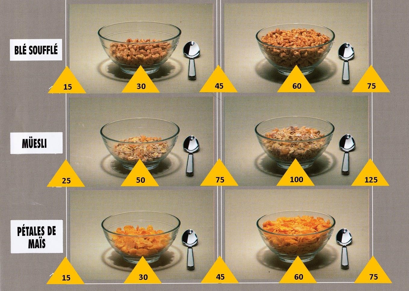 Vous pouvez également visionner les photos ci-dessous pour évaluer vos quantités d'aliments.